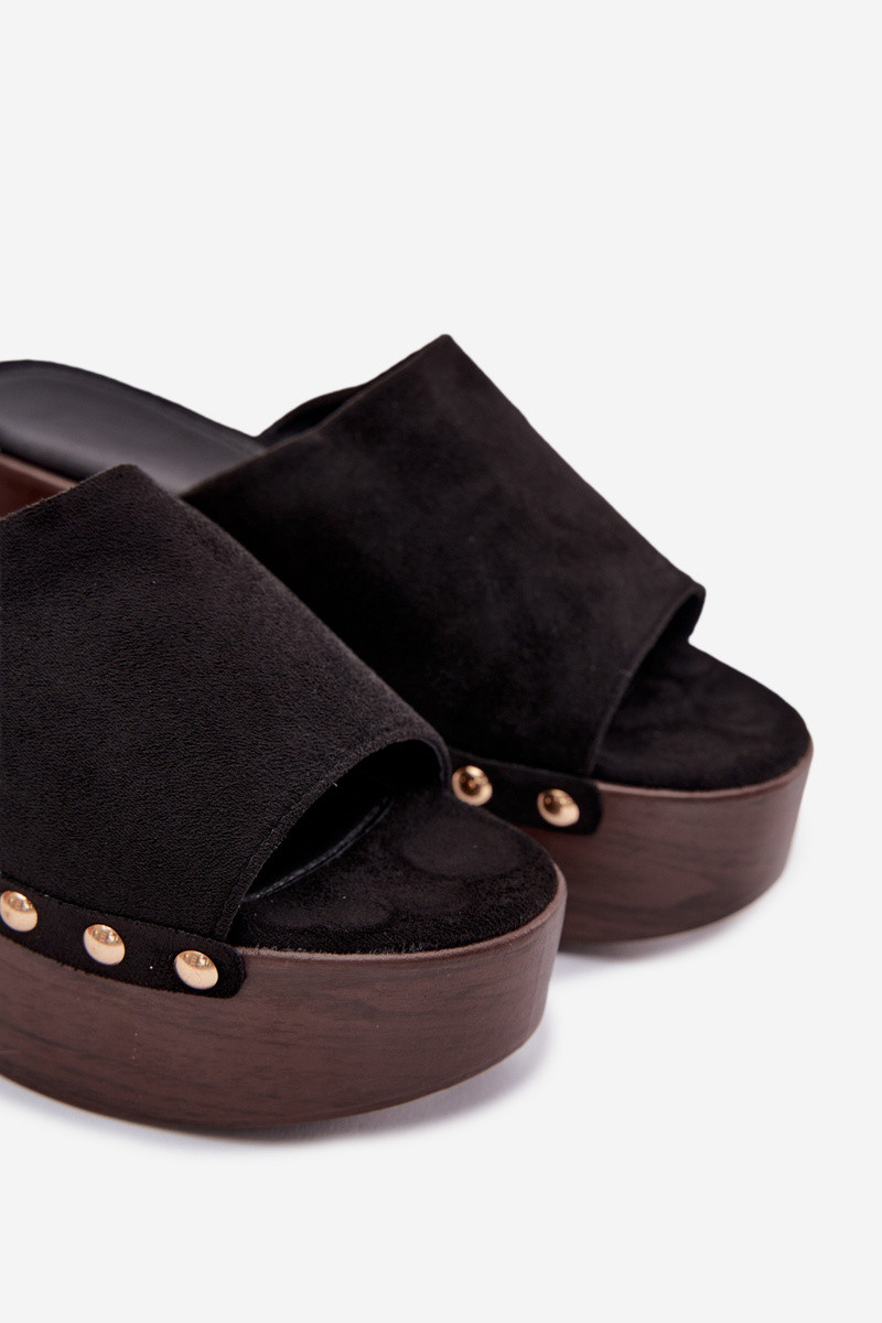 Damenhausschuhe auf einer Plattform aus Kunstwildleder in Schwarz Helivina
