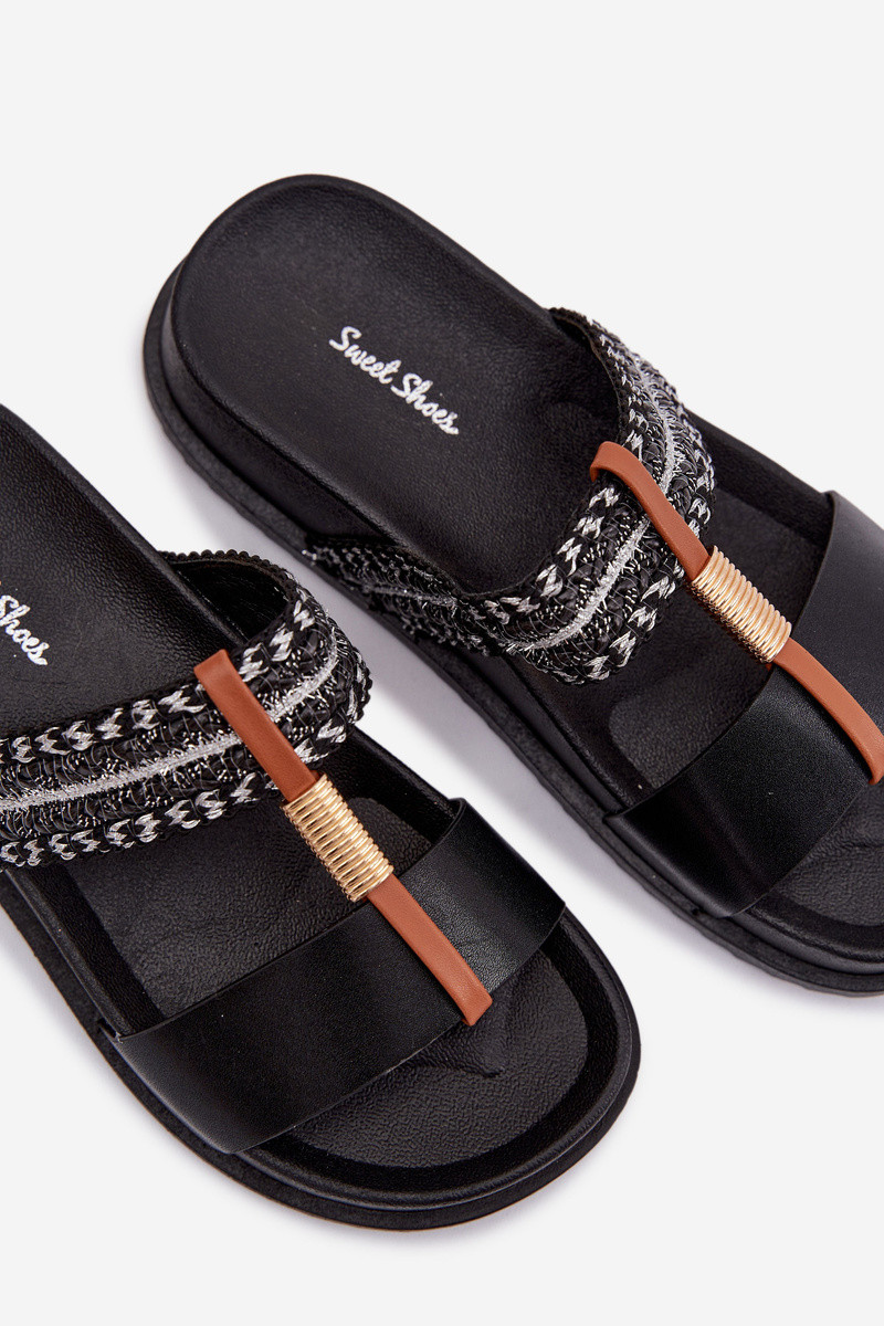 Damenhausschuhe mit einer Plattform mit Streifen I goldene Farbem Detalem schZuarze Farbe Tahlia