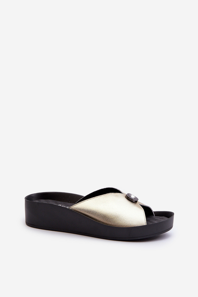 Lederhausschuhe Feminin mit Ornamenten goldene Farbe S.Barski KV27-027