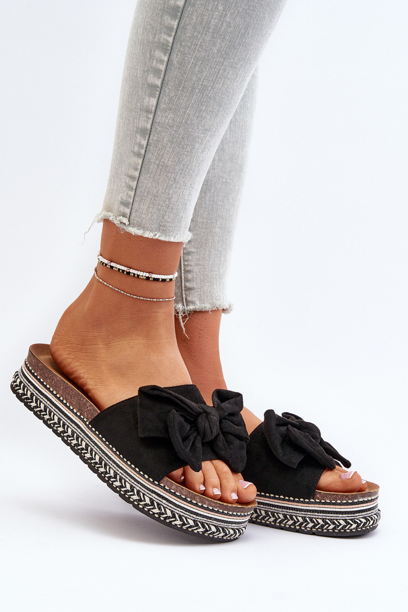 Damenhausschuhe mit einer Plattform mit Bändern schZuarze Farbe Evatria