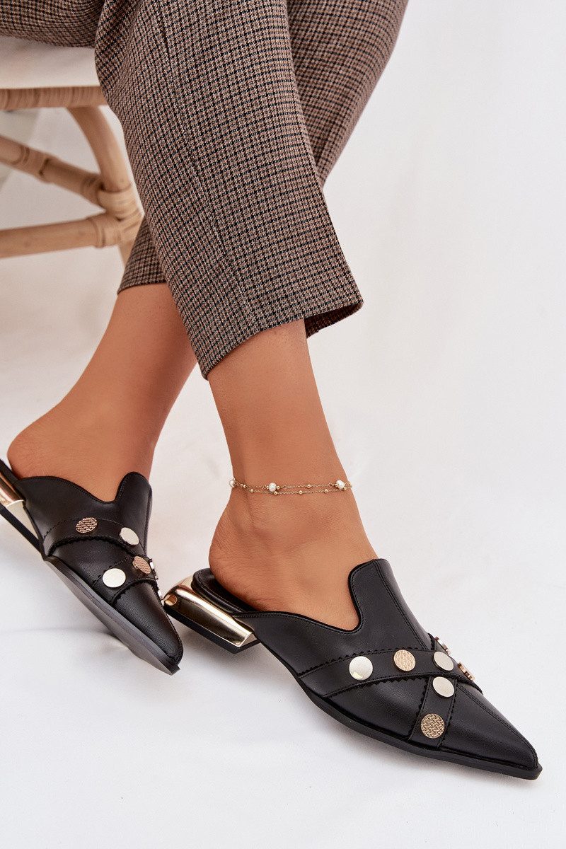 Lederhausschuhe Mule Feminin mit Riemen D&A CR61-3058 schZuarze Farbe