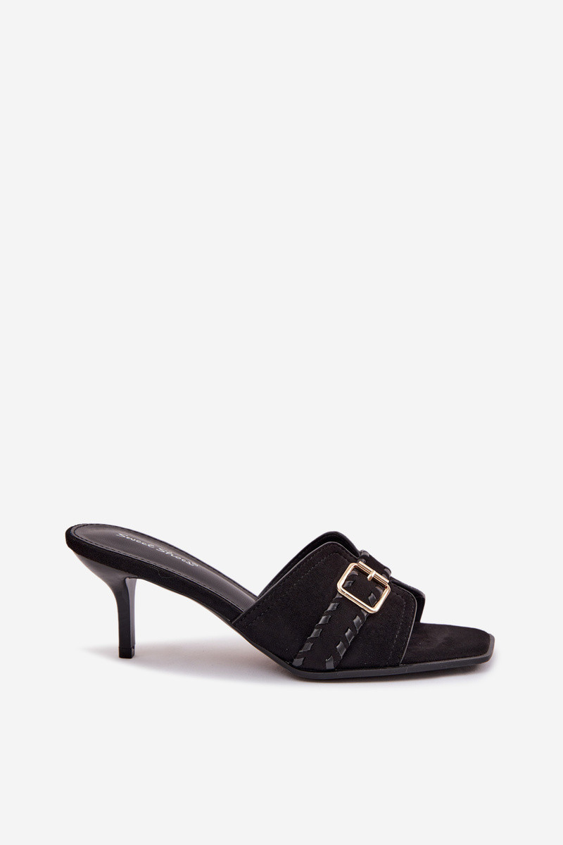 Damenhausschuhe mit dünnen Absätzen mit Riemen I Złotą mit Schnallen schZuarze Farbe Jelira