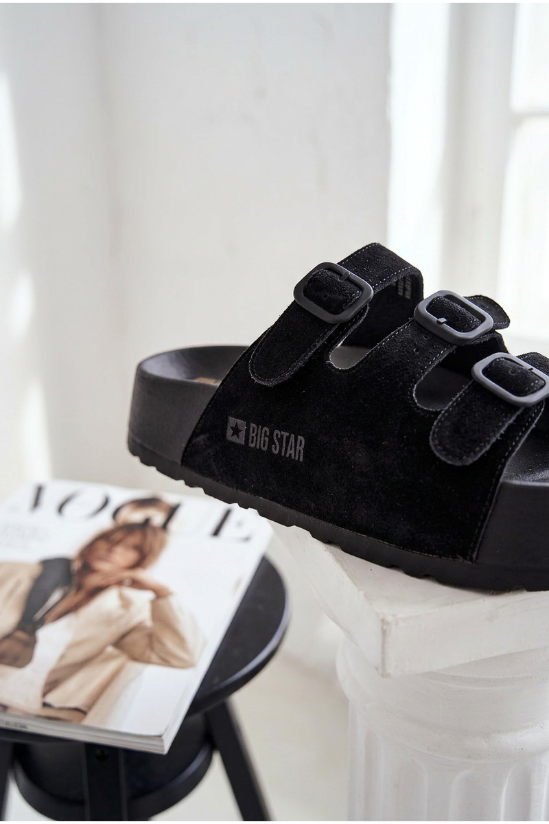 Damen-Pantoletten mit Plateau und Riemchen Big Star TT274531 schwarz