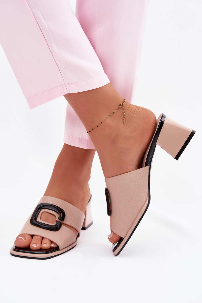 Damen Pantoletten mit Ausschnitten und Schnallen auf Absatz Vinceza 62284 sandfarben
