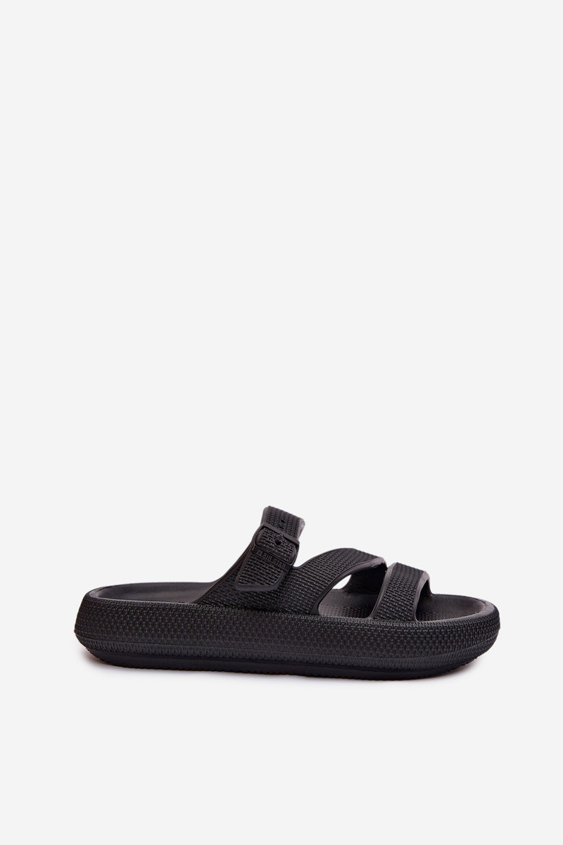 Leichte Hausschuhe Damenhausschuhe mit Streifen I mit Schnallen Big Star TT274A037 schZuarze Farbe
