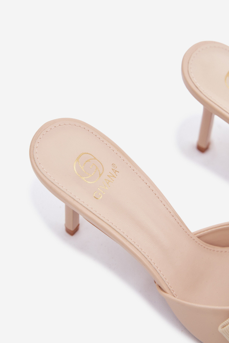 Damen Pantoletten mit feinen Absätzen und Schleifen gelb Jelessa