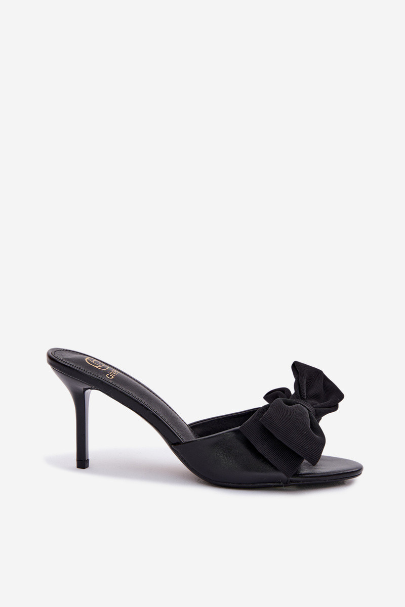 Damen Pantoletten mit feinen Absätzen und Schleifen schwarz Jelessa