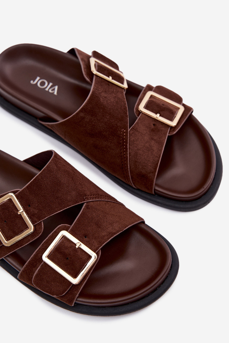 DamenhausschuheImitacji aus INildlederu goldene Farbe mit Schnallen CzekoladoZue Selissea