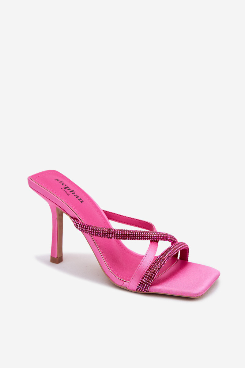 Damen violette Pantoletten mit dünnen Absatz und glitzernden Akzenten Karima