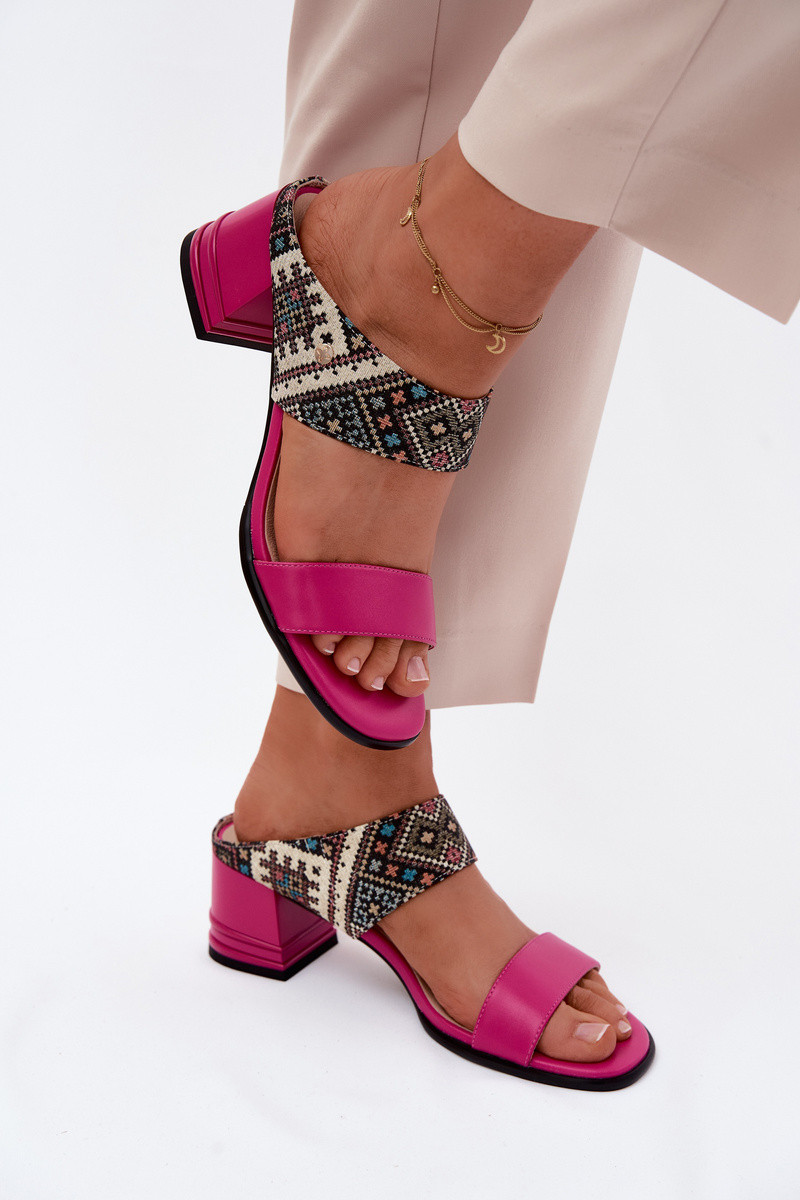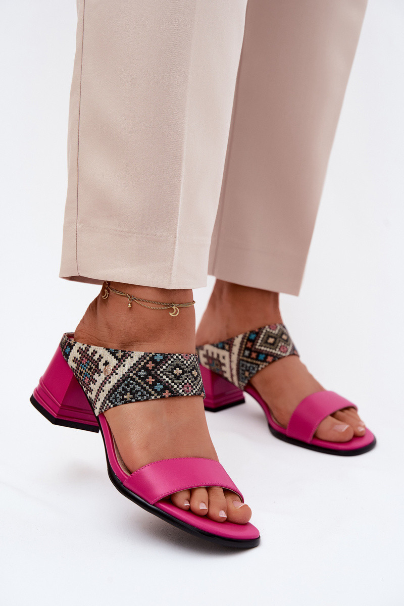 Haut Gemustert Damenhausschuhe mit Absätzen Es mussciejka K7522-15 pinke Farbe
