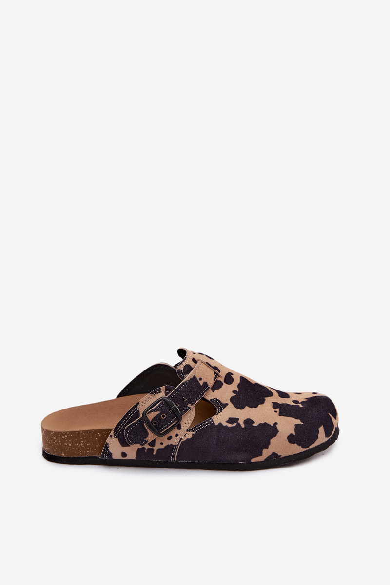 Haut INildlederpantoffeln Mule mit Schnallen KroZuie Łaty Zazoo 1905 Beige-schZuarze Farbe