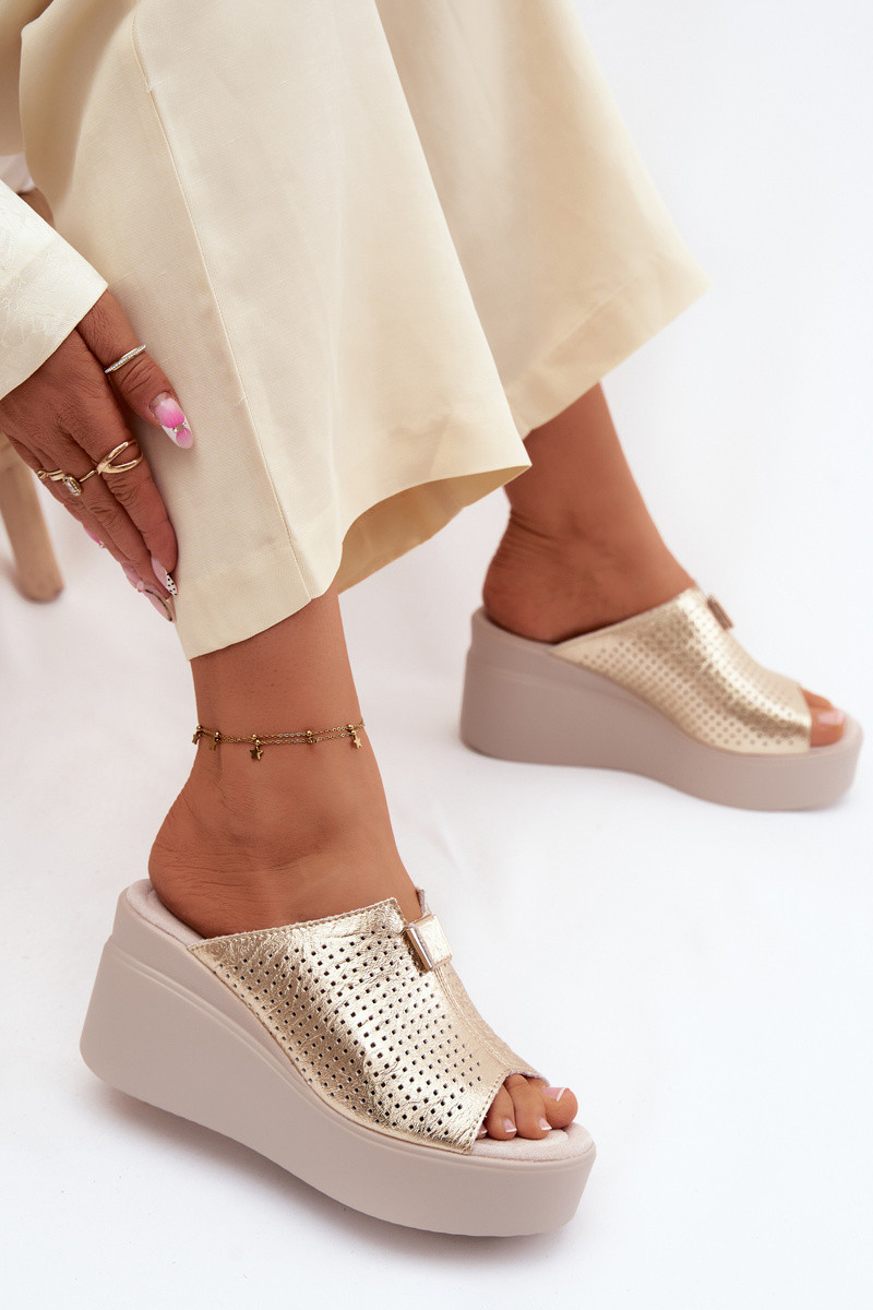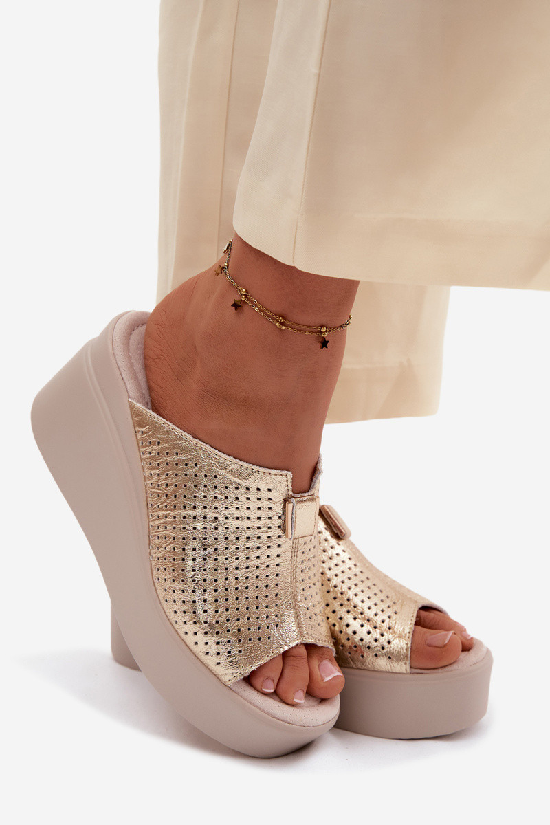 DamenhausschuheErmöglichtturalnej Skóry mit einer Plattform Vinceza 95392 goldene Farbe