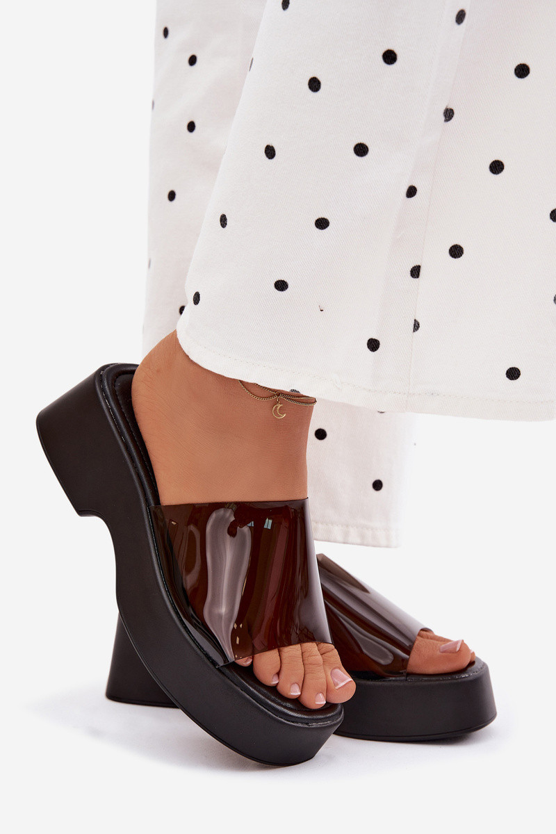 Damenhausschuhe mit einer PlattformTransparentnym Streifenem schZuarze Farbe Selestia
