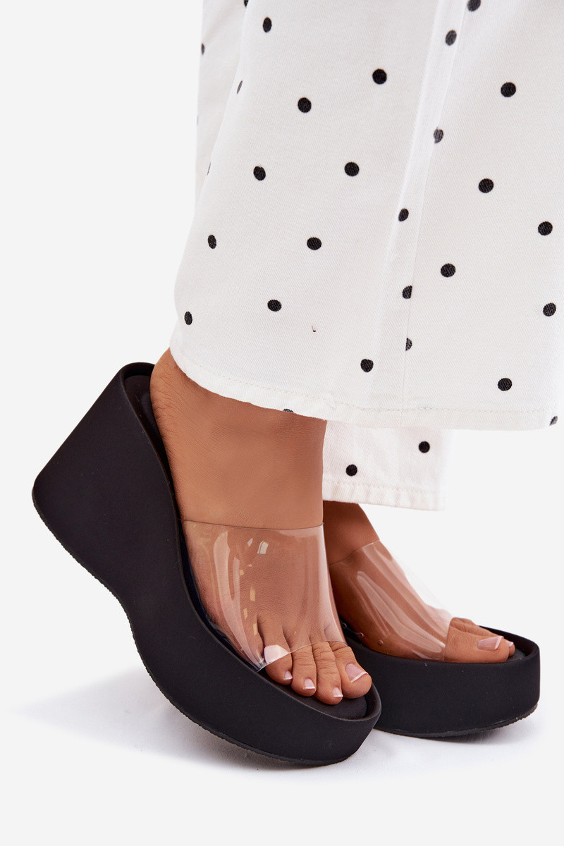 Damen schwarze Plattformslipper mit transparenten Riemen Zolretia