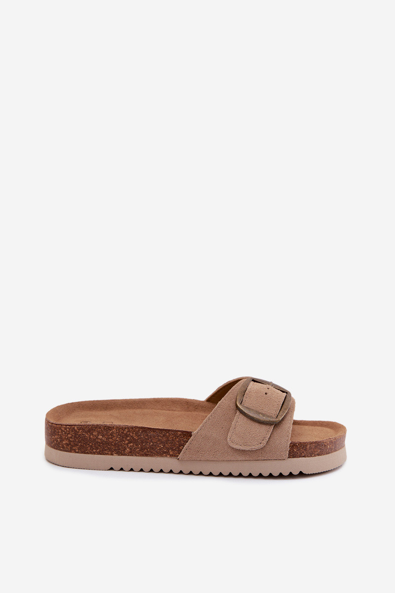 Sandfarbene Veloursleder Damenhausschuhe mit Schnallen Emiline