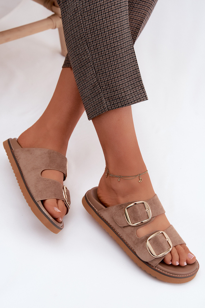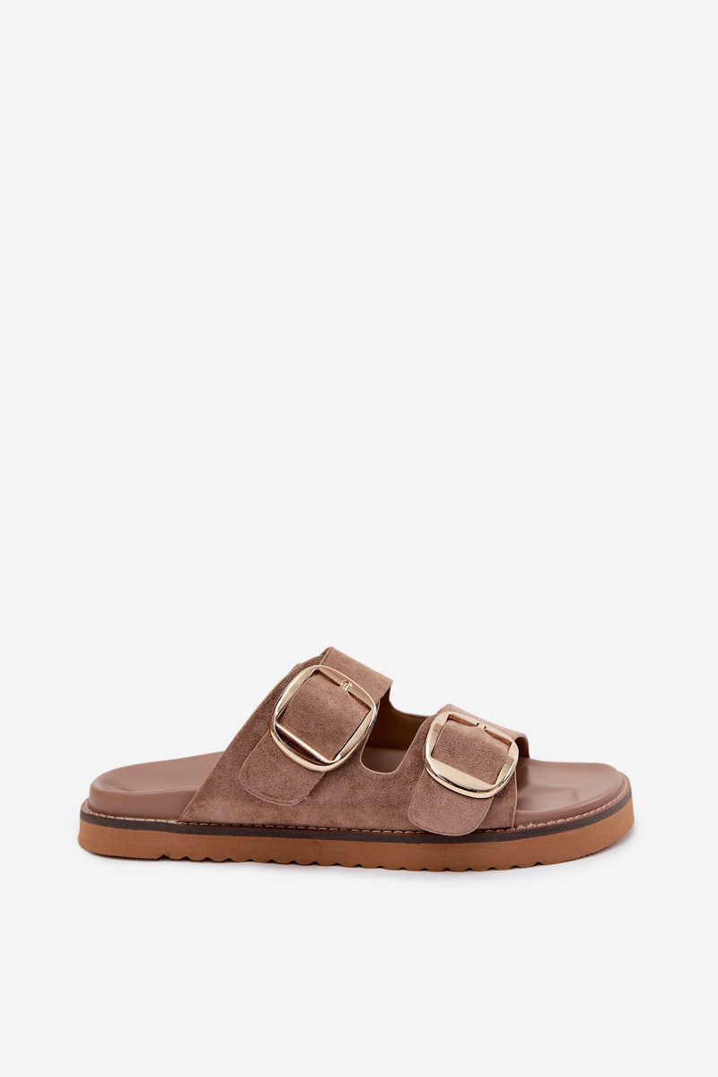 Goldene Damenschuhe mit Kunstveloursleder-Schnallen in Braun Averia