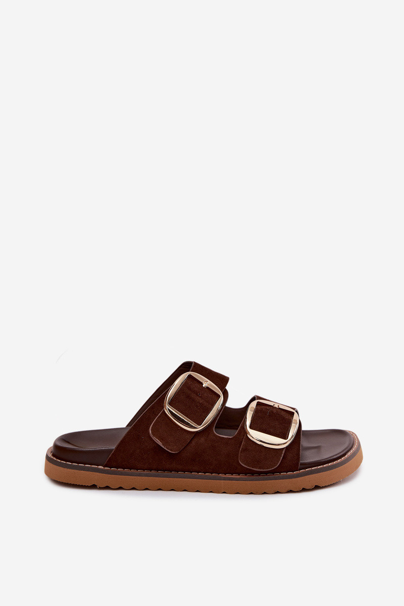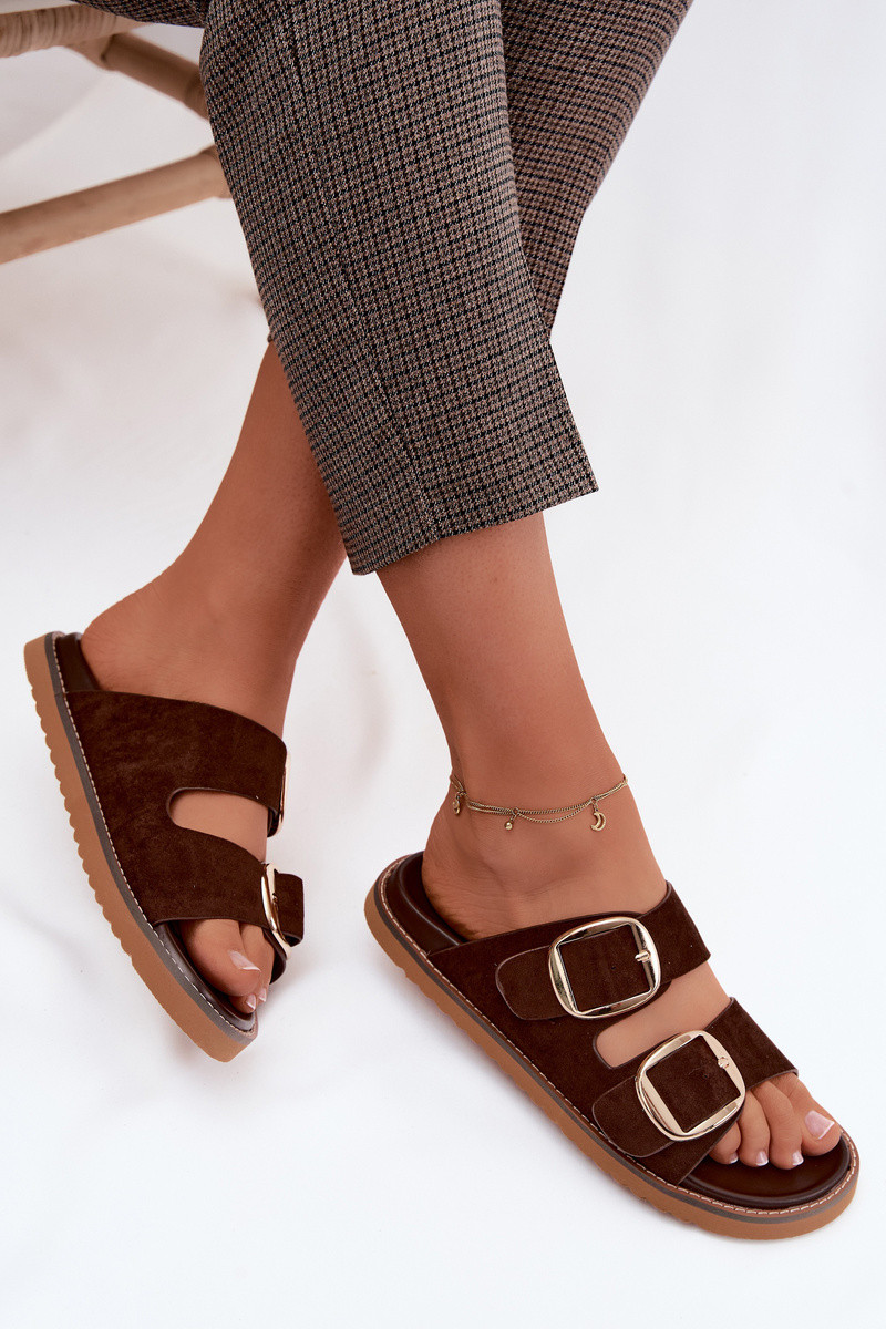Damenpantoletten aus Kunstveloursleder mit goldenen Schnallen Czekolado Averia