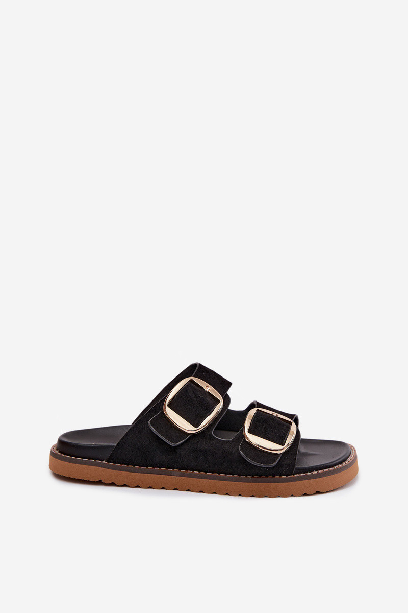 Goldene Damenschuhe mit Kunstveloursleder-Schnallen in Khaki Averia