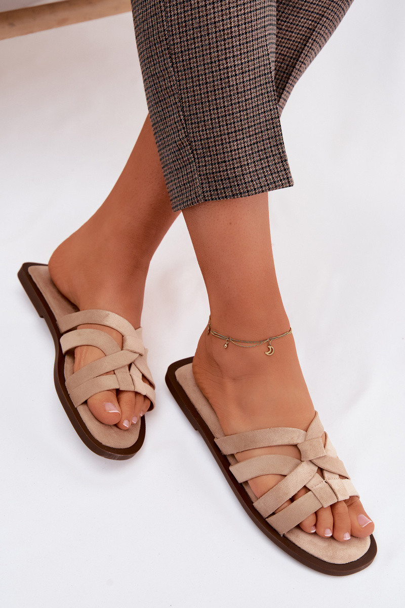 Damenpantoletten mit Riemen aus Kunstveloursleder in Braun Calvia