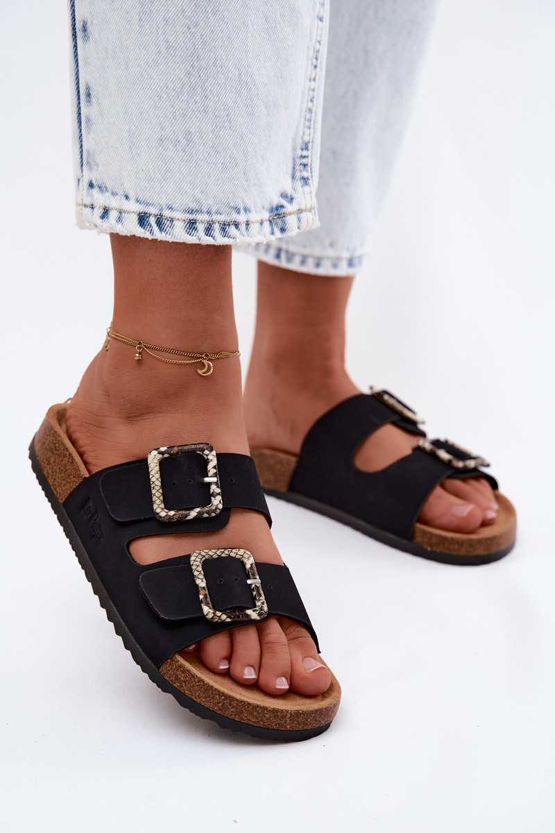 Damen-Pantoletten mit Schnallen Lee Cooper LCIN-26-35-4450L in Schwarz