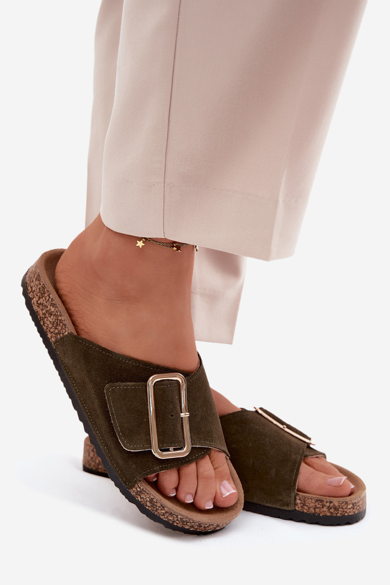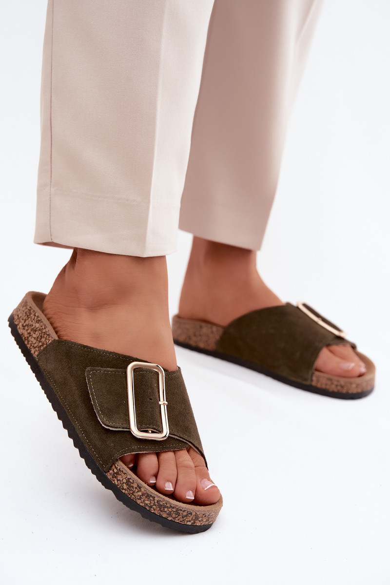 Haut INildleder-Hausschuhe für Damen mit Schnallen Khaki-Farbe-Farbe Beryl