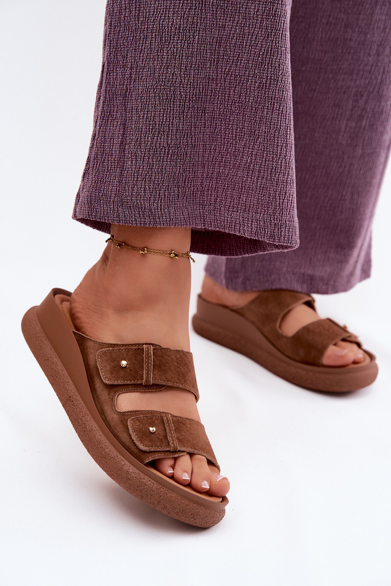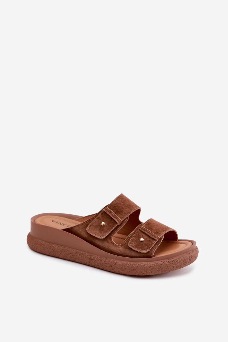Haut INildleder-Hausschuhe für Damen mit einer Plattform Vinceza 66916 braune Farbe