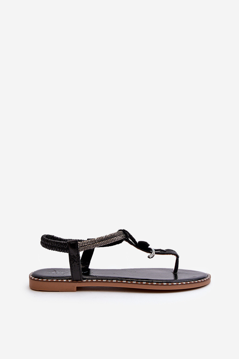 Flache Sandalen für Damen mit Blumen in der Farbe Schwarz von Edoni