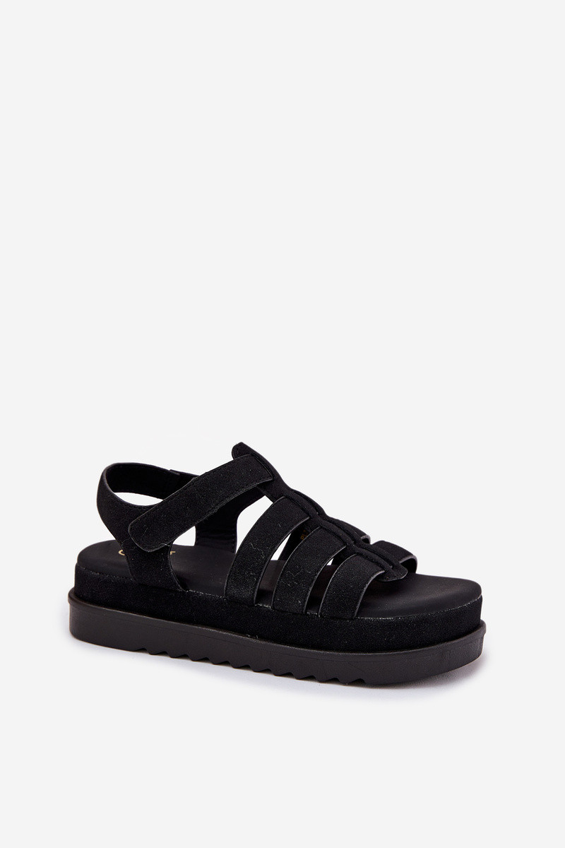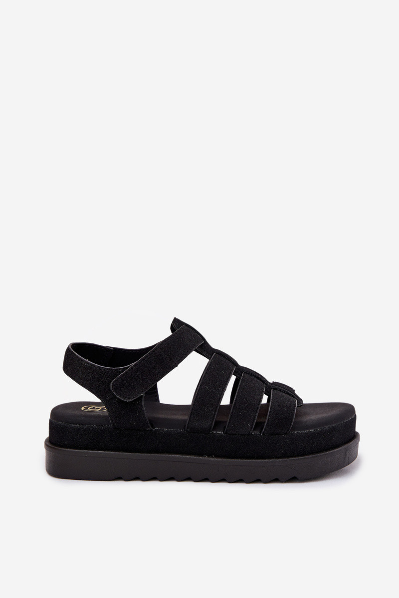 Damensandalen mit einer Plattform aus Öko-INildlederoZue schZuarze Farbe Filisenia