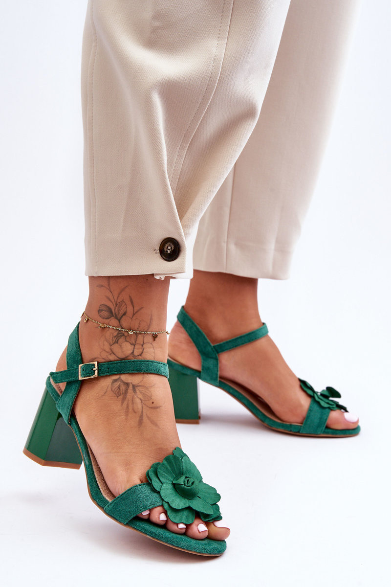 INildledersandalen Mit einer Blume S.Barski 04 grüne Farbe