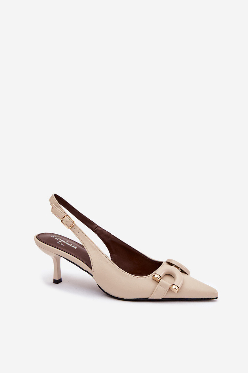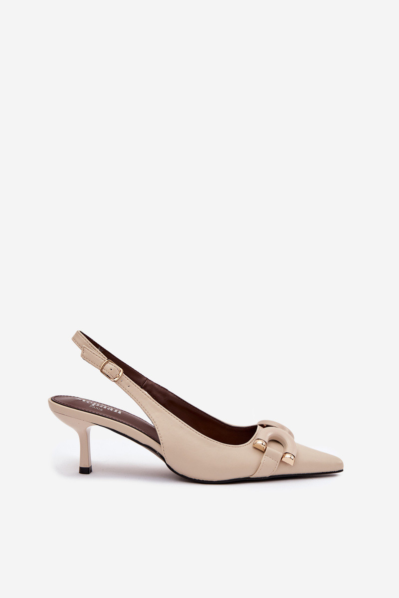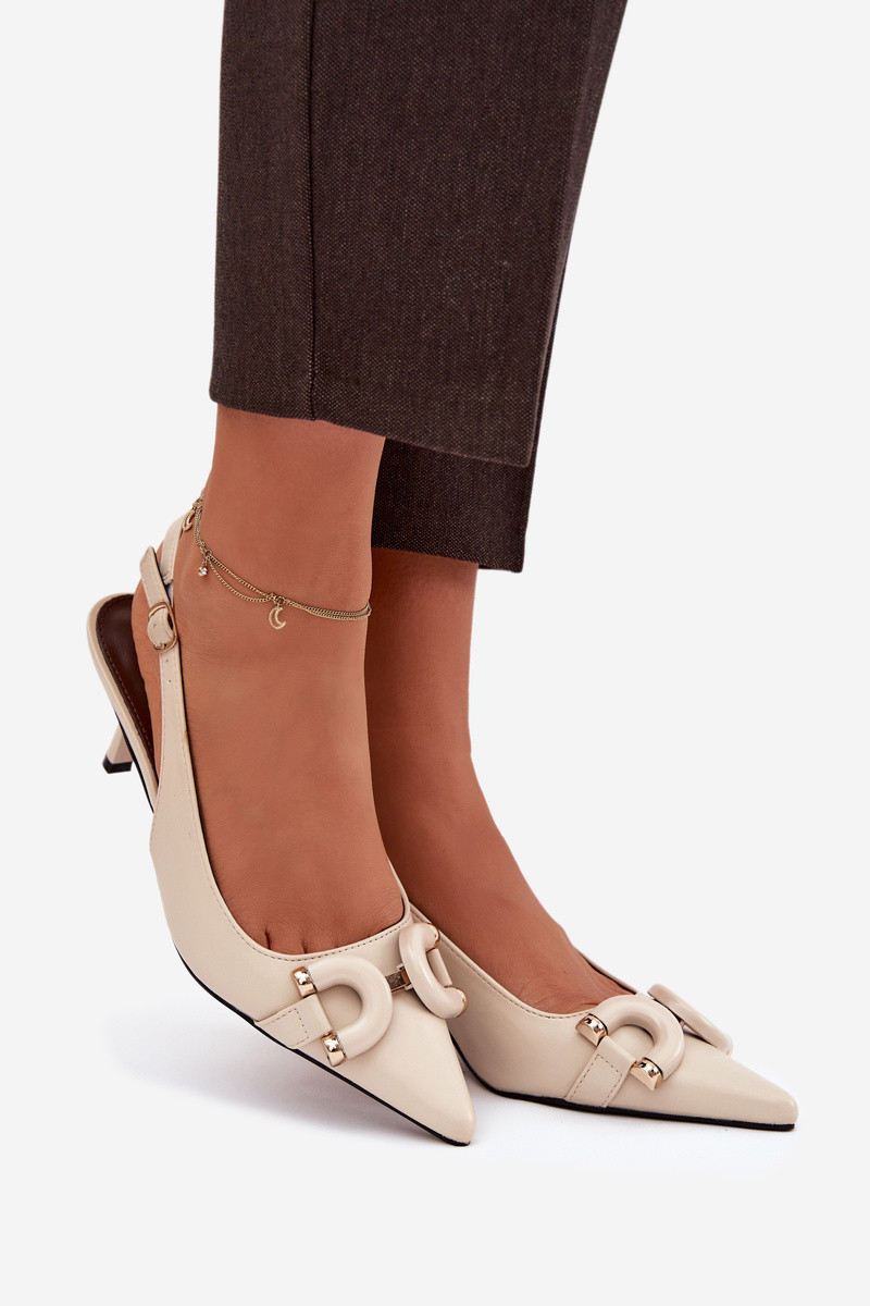 Damen-Sandalen mit dünnen Absätzen und dekorativen Details, elfenbeinfarben, Brienne