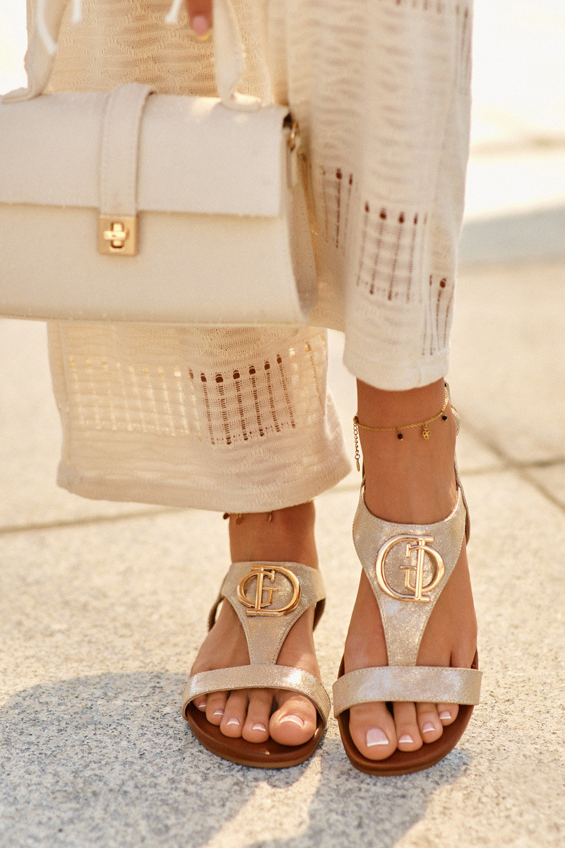 Flache Sandalen für Damen mit Ornamenten S.Barski KV27-051 goldene Farbe