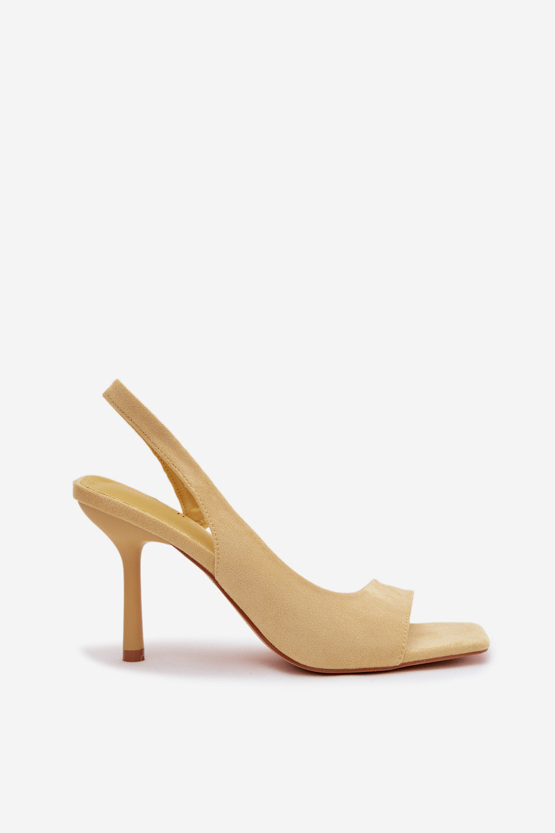 Damensandalen mit dünnen Absätzenaus Öko-INildlederu gelbe Farbe Calvoria