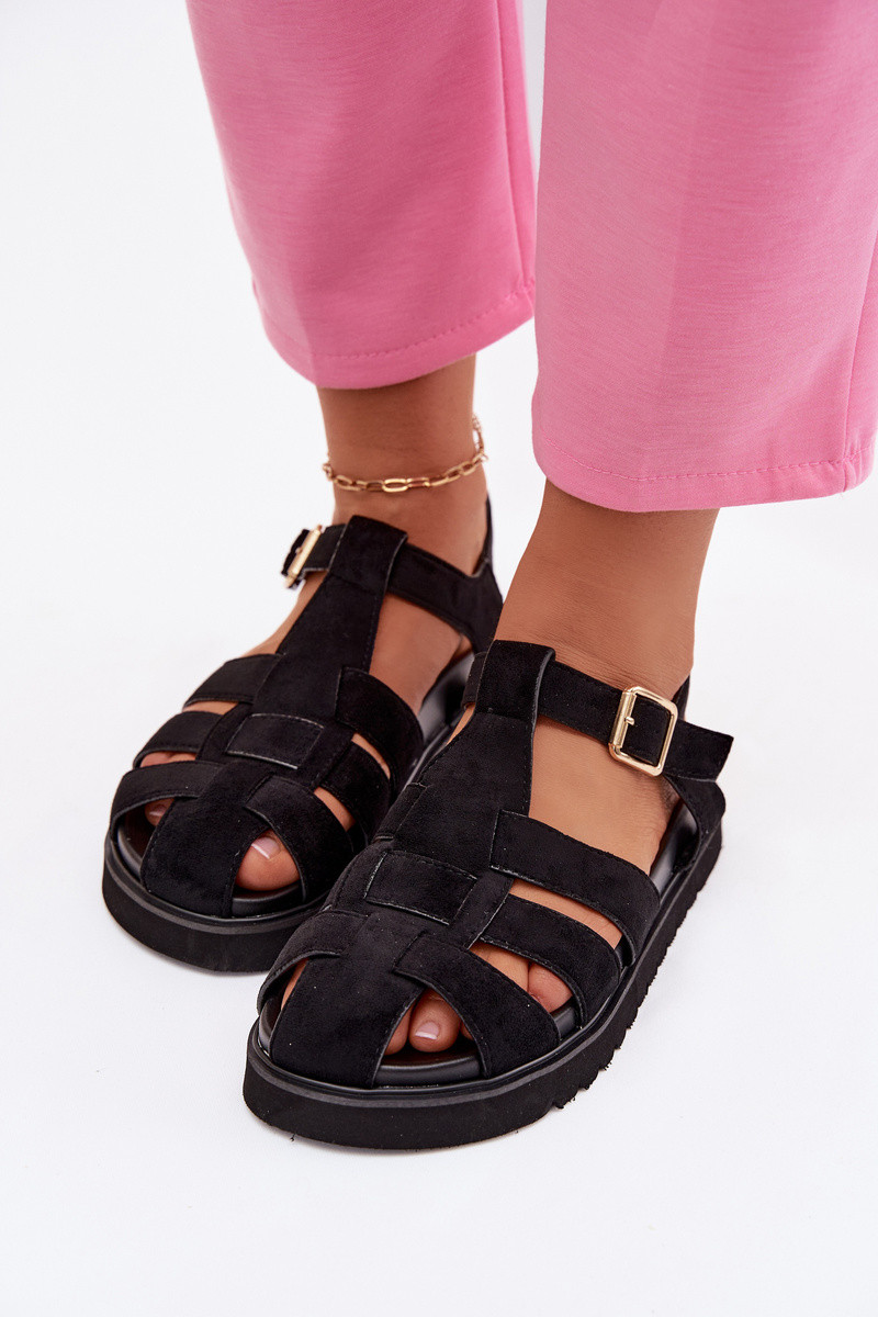 Damensandalen Rzymianki mit goldenen Schnallen mit einer Plattform schZuarze Farbe Terelina