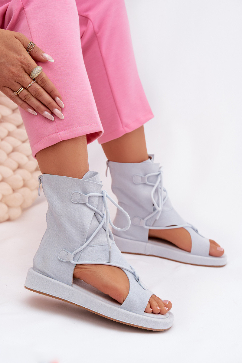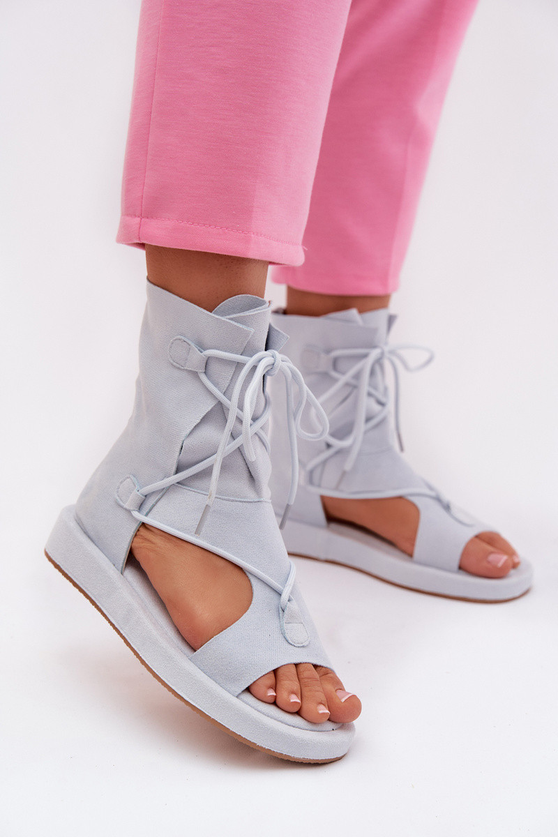 Damensandalen aus Öko-INildlederoZue mit einem Stiefel I INiązaniem hellblau Ferlisse