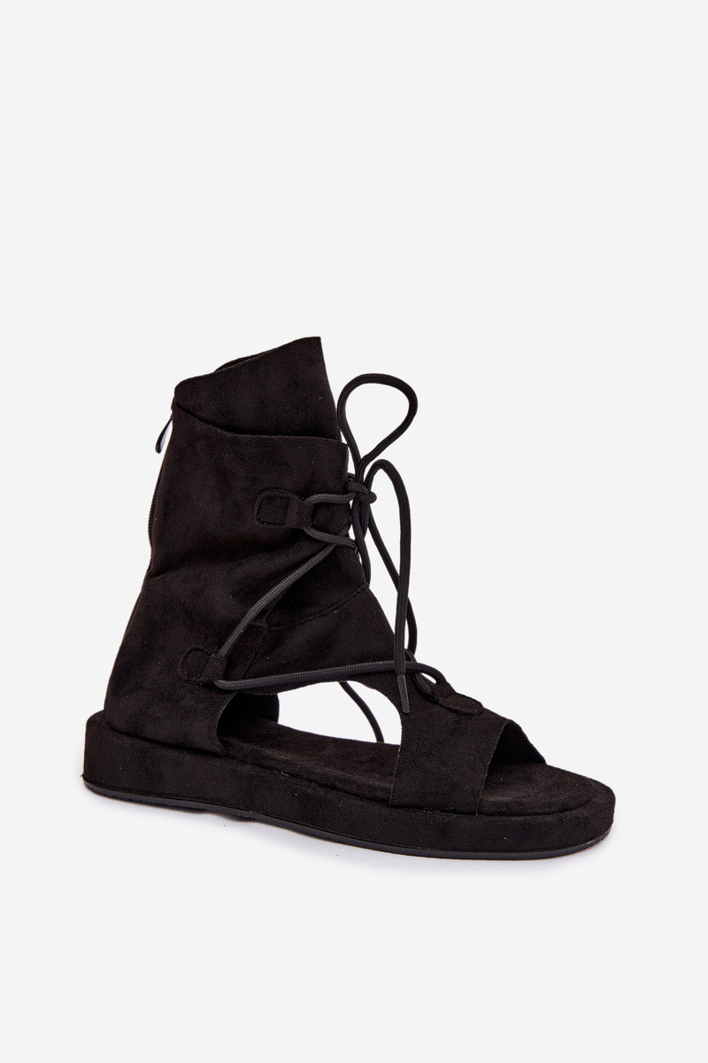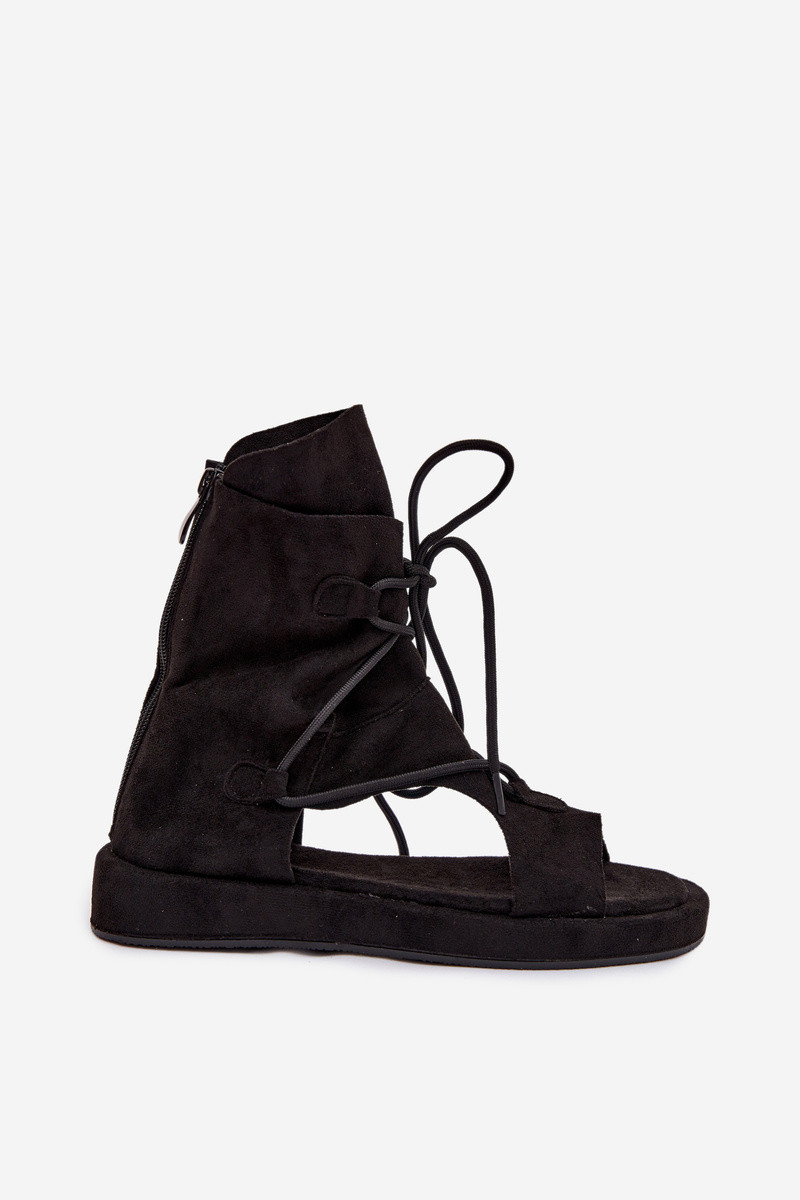 Damensandalen aus Öko-INildlederoZue mit einem Stiefel I INiązaniem schZuarze Farbe Ferlisse