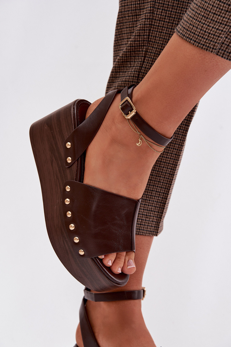 Damensandalen Auf einem Keil Ze goldene Farbemi Stollen CzekoladoZue Galorina