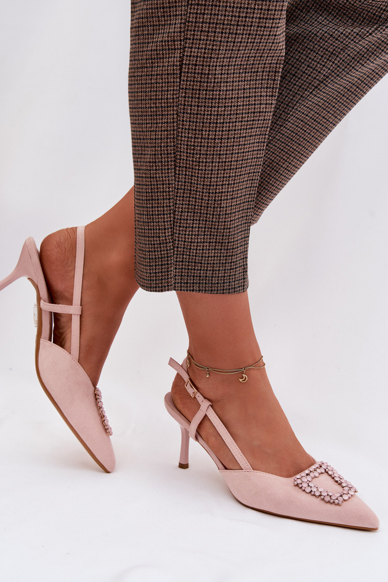 Damen-Sandaletten mit dünnen Absätzen und Ornamenten, rosa, Ismeria