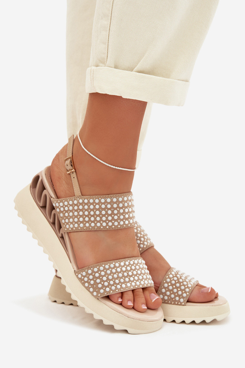 Leder Wildleder Sandalen mit Dekoration D&A CR61-3067 in Sand