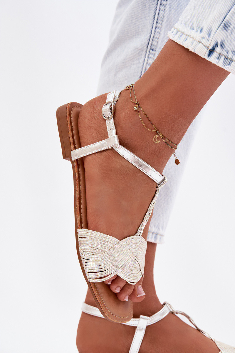 Flache Sandalen für Damen in Silberfarbe Nexora