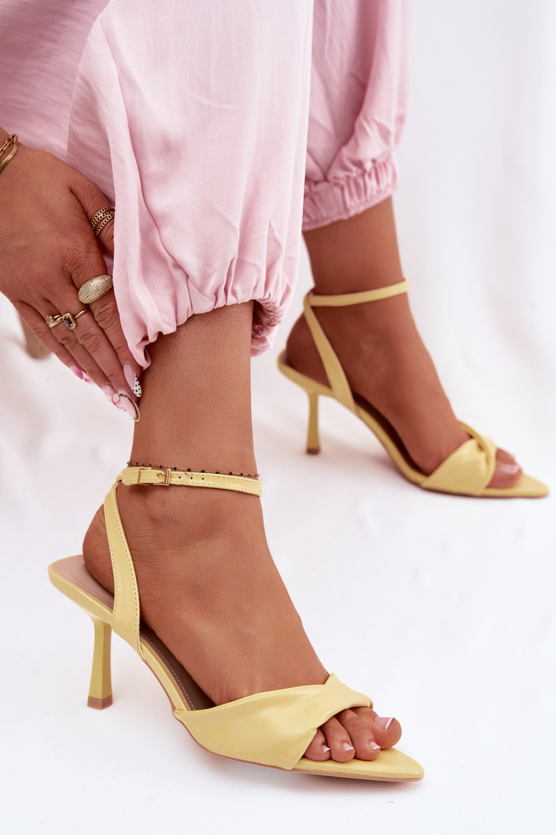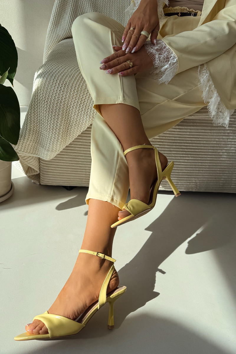 Damensandalen mit dünnen Absätzen aus Öko-Leder gelbe Farbe Sedira