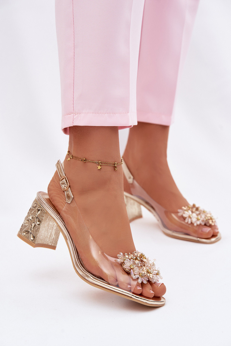 Transparente Sandalen mit Absätzen und glitzernden Akzenten Vinceza 70124 in Gold