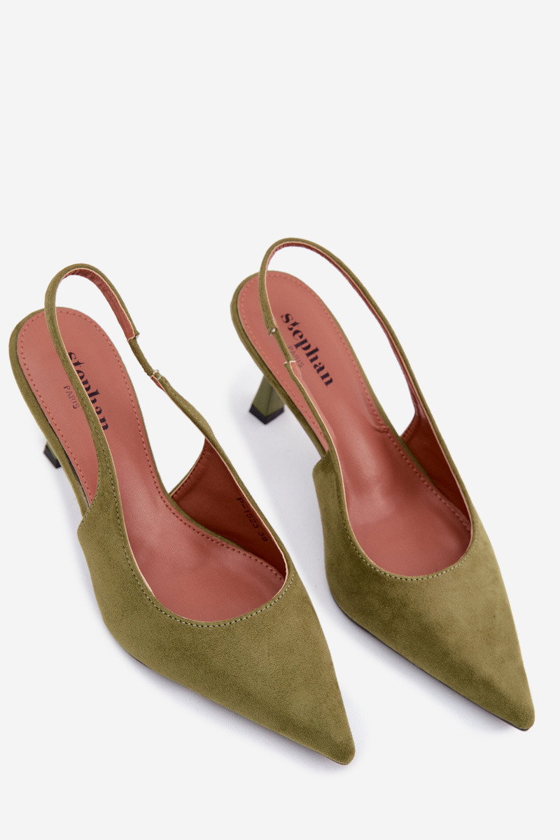 Damen rosa Sandalen mit dünnen Absatz aus Kunstvelours Saria