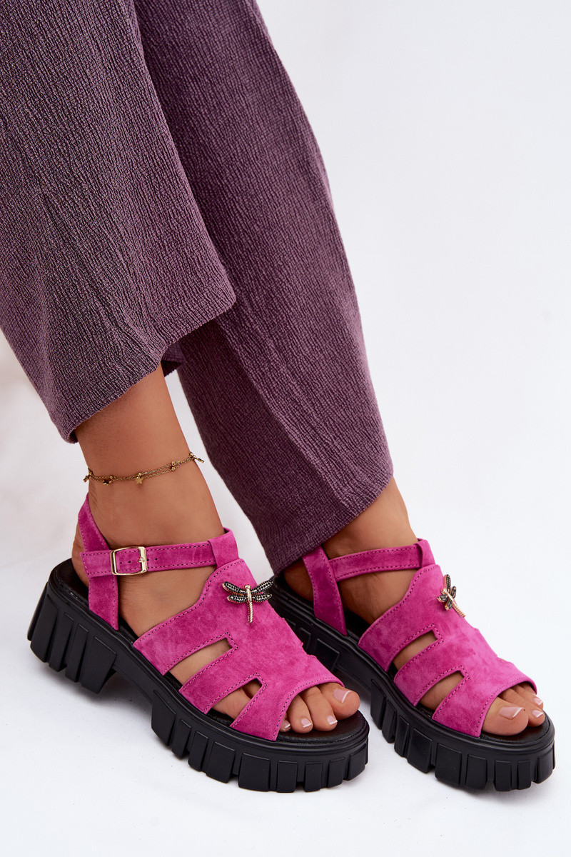 Leder-Faux-Suede-Damensandalen mit Schnalle Vinceza 79627, schwarz