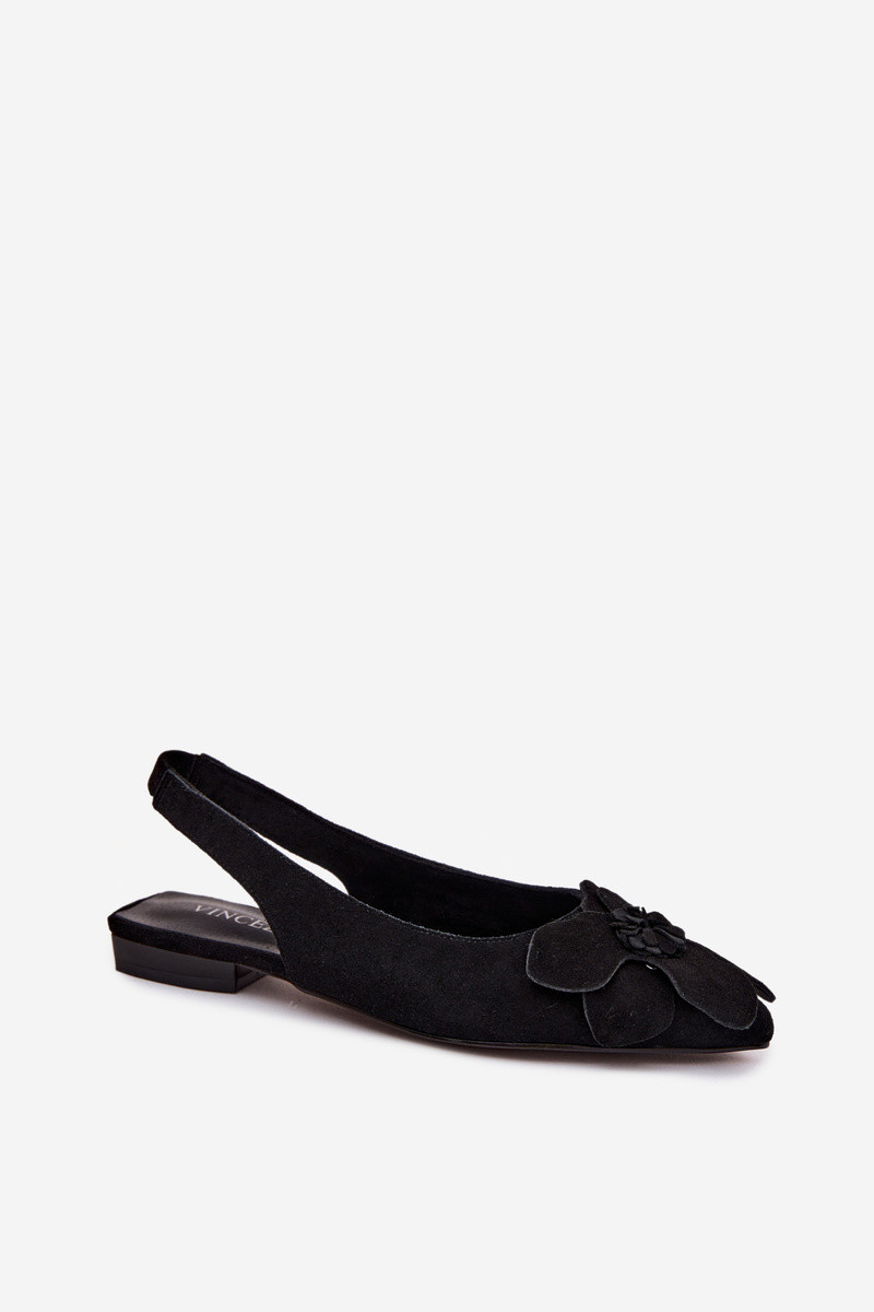 Schwarze Kunstveloursleder-Damensandalen mit breitem Absatz und Blume Vinceza 66951