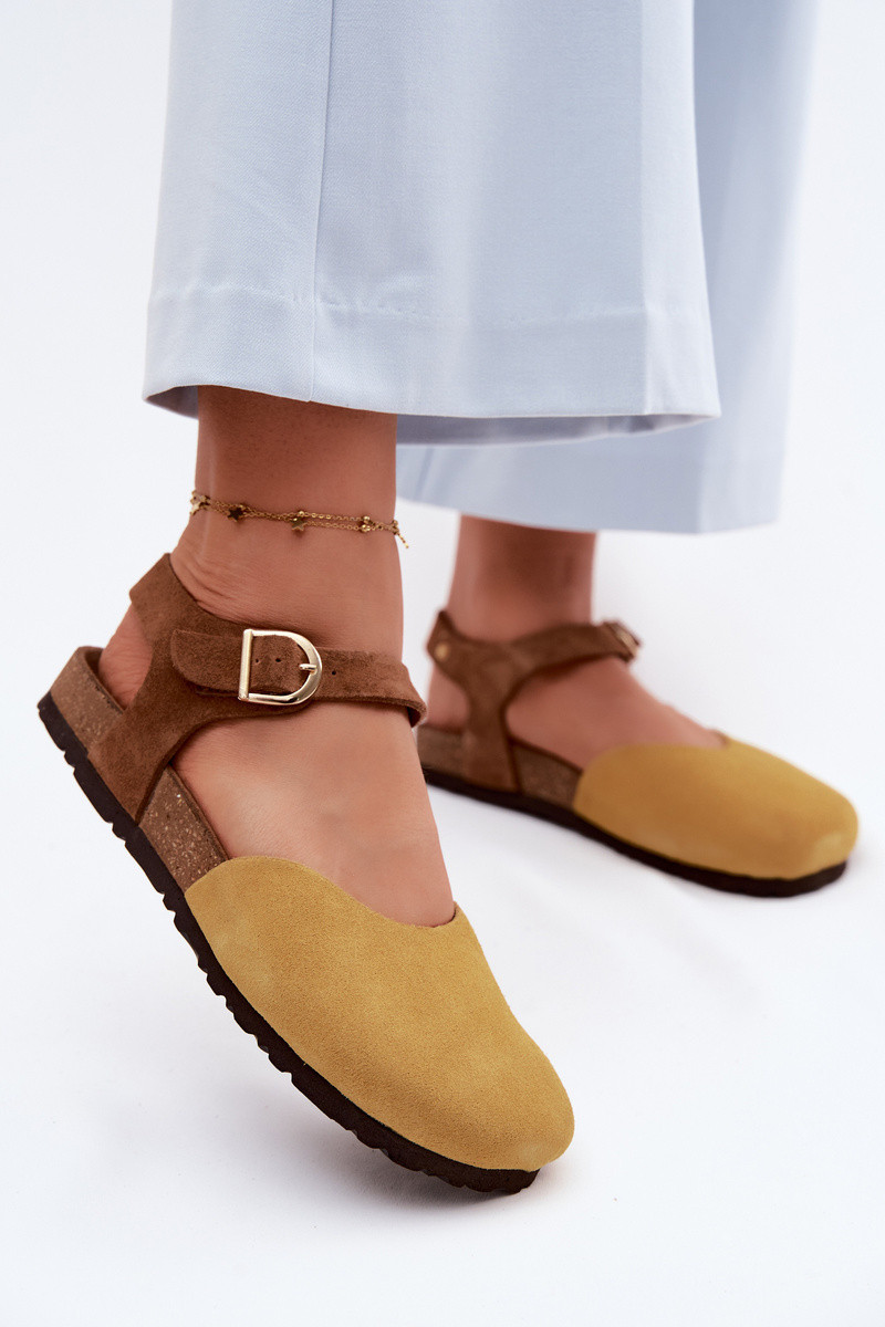 Leder-Suede Sandalen mit geschlossenen Zehen Tai turiciejka H7365-07 gelb