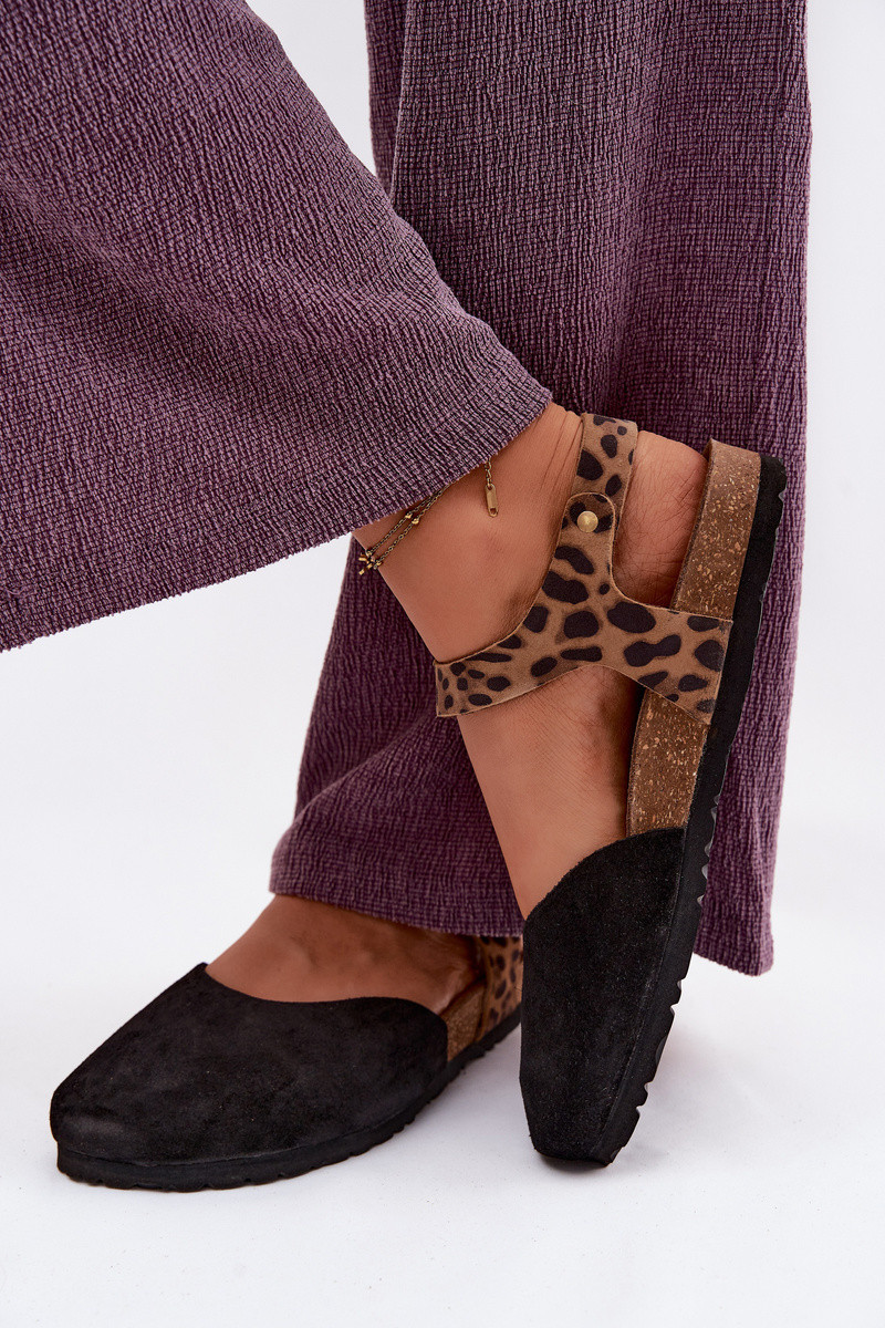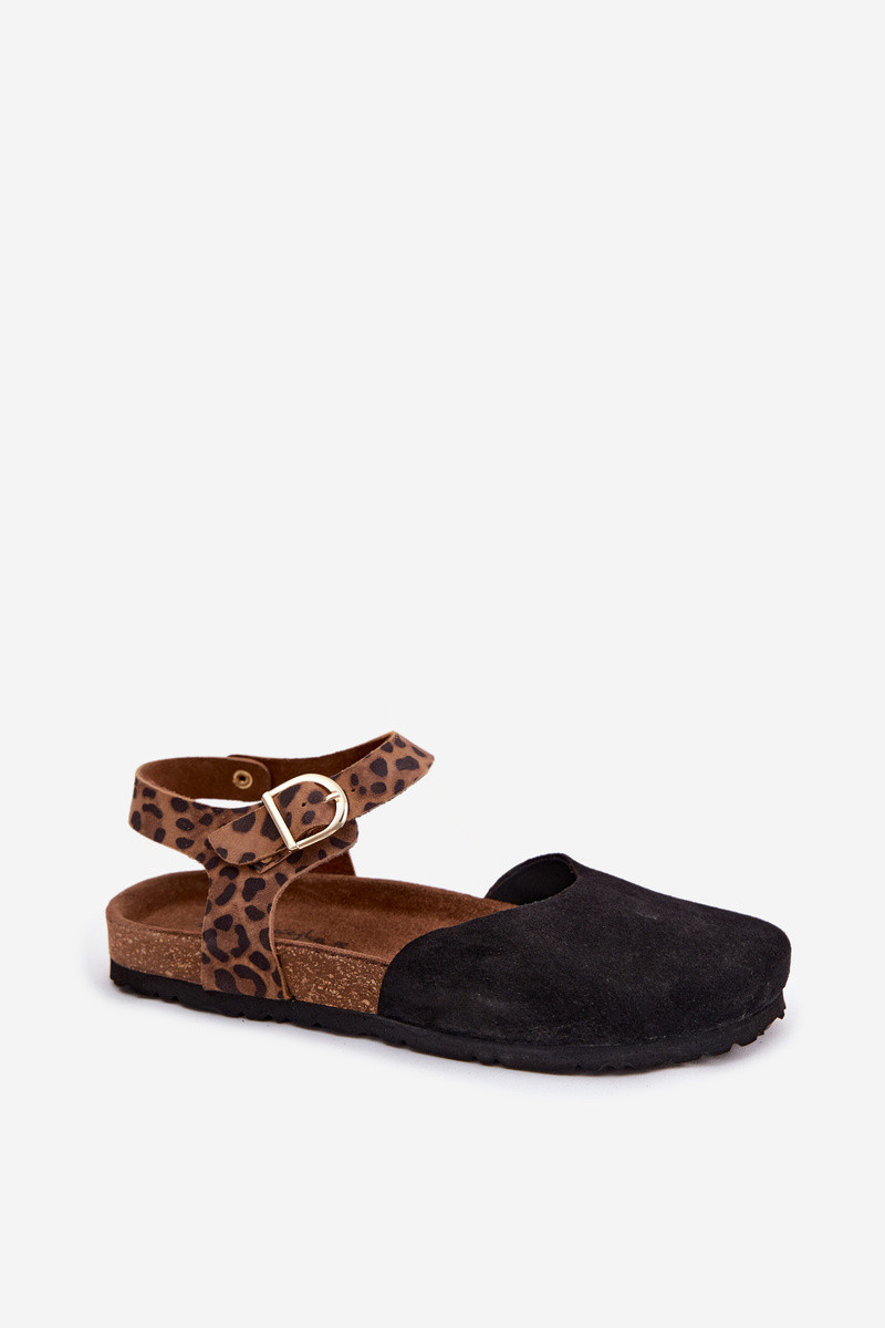 Lederne Damen-Suede-Sandalen mit geschlossenen Zehen in Schwarz
