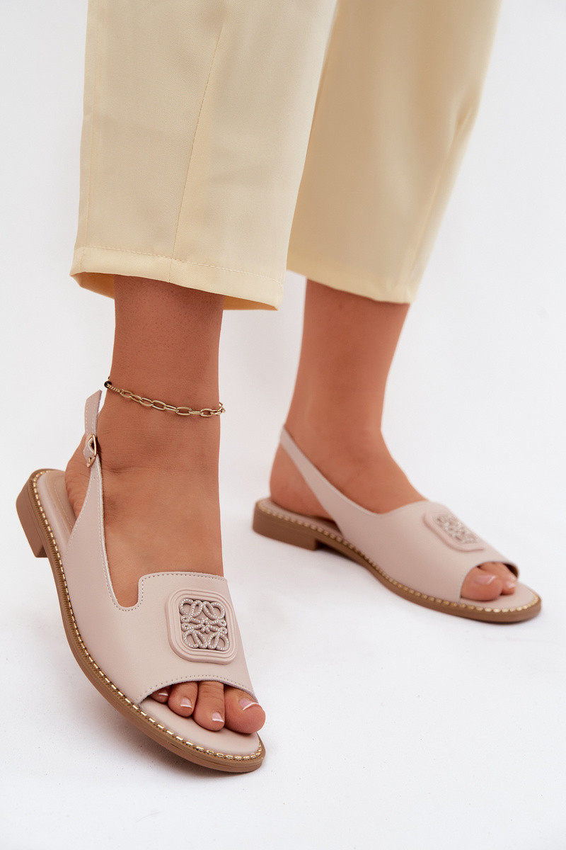 Damensandalen Feminin mit breiten Absätzen mit Ornamenten S.Barski KV61-6018 Nude