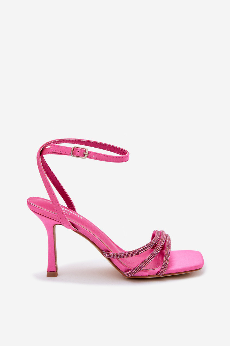 Lila Damen-Sandalen mit dünnen Absätzen und funkelnden Nieten Chiara