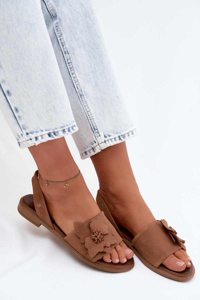 Wildledersandalen mit breiten Absätzen und dekorativen Blumen Zazoo 407471 in Braun