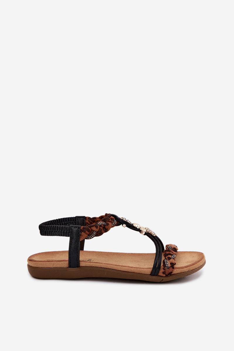 DamensandalenPrzypinkami I Plecionymi Paskami schZuarze Farbe mit Leopardenfellmuster Nusoreth